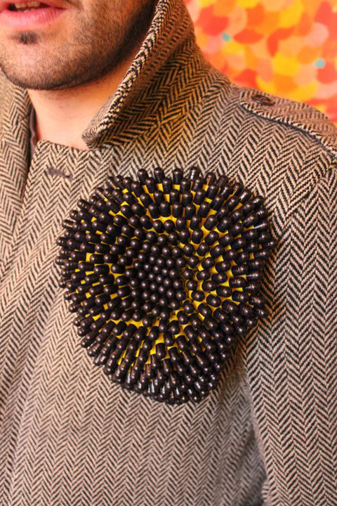 Wearable art made with pills.
